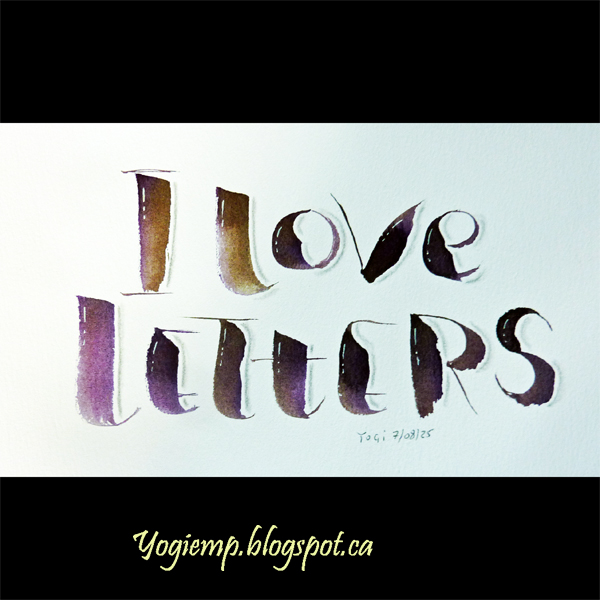 ID: wk 32 - I Love Letters Not happy with the image colors... On St Armand watercolor paper using a Rosemary & Co #08 Triangle Brush double dipping into Gansai Tambi Granulating w/c (Aurora Pink and Orange). Adding graphite shadowing with a Caran d'Ache B pencil and paper stump. Then a small highlight with a Unibal white gel pen. words: I Love Letters