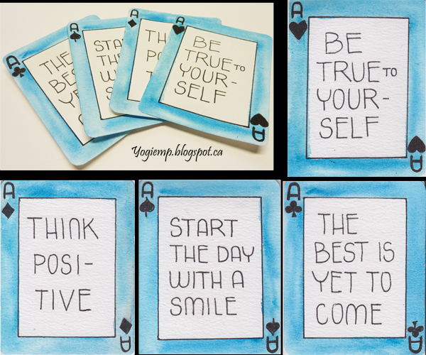 Inspirational Cards Done on St Armand watercolor paper. Using a Zig Writer for the border, lettering and design elements. Painted with Holbien Peacock Blue (my favorite blue) and lots of water. Rounded the corners. Lettering in a basic monoline. words: