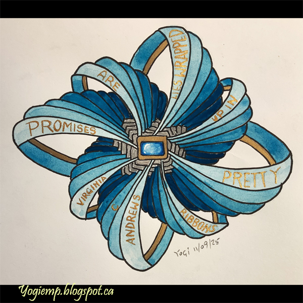 - Ribbons - Promises Are Lies On Edge Mixed Media Sketchbook paper drew out my design. Painted with 1 blue color diluting with water for every section. Gold Sharpie pen for the thin stripe and letters. Silver Sharpie for the center section. words: Promises are lies wrapped up in pretty ribbons. Virginia C Andrews