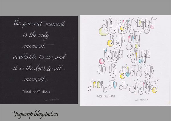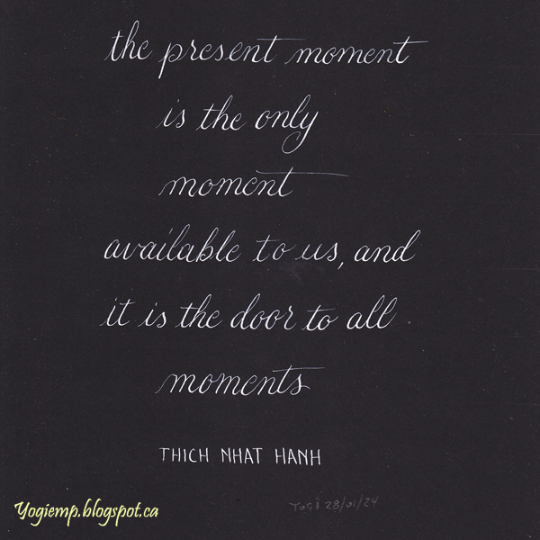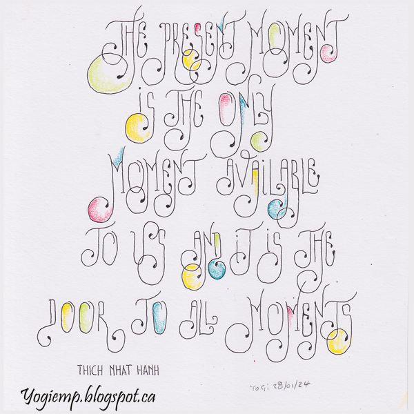 28, 2024 I saw this quote and was inspired to write it... did it on the black 1st and then wanted to do it with funky lettering.. The present is the only moment available to us, and it is the door to all moments. Thich Nhat Hanh |