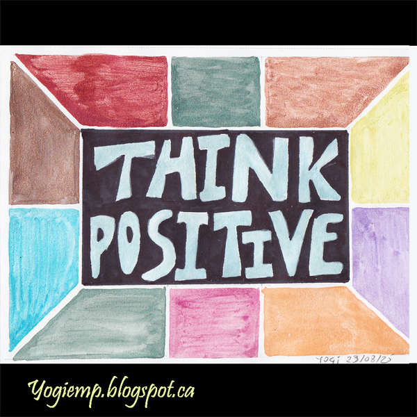 size: 5.5"w x 4.25"h On Canson Pen & Ink Paper drew out the border and lettering and painted with Gansai Tambi Gem w/c. words: Think Positive