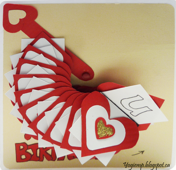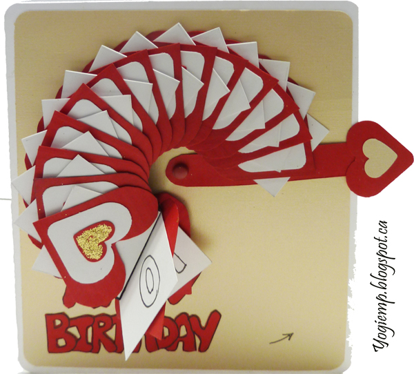 - HB Created: January 25, 2026 And another spinner card... I think I'm addicted to them... You can see an other one HERE The mechanism is a the black circle scored to create 24 sections and a 1.25" circle in the center, then 7 sections cut away including the small center circle. Accordion folded both ways to make the mechanism very pliable. (the 1st section will be glued to the card base at the end of construction). I adhered white squares, then a largish hand cut red heart to each, and then punched out white hearts and then the small punched heart which I added glitter to (some like the heart on the front and some just as an outline of a heart. This was mounted to a gold textured cardstock and then onto my white card base. On the underside of each white base I wrote out a single letter to read "LOVE U BUNCHES with a glittered heart separating the words. |