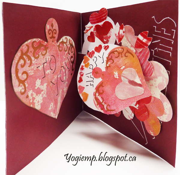 January 9, 2026 size closed: 5.5"sq The challenge for our next Art Of The Fold Group (Jan 2026) has us making a spinner card and this is my 2nd card... couldn't resist trying to make one that didn't catch when opening the card and since Valentine's is around the corner... figured hearts was appropriate. Again I used scraps for the card. Basic white card base, then I glued the red paper to the card base. I used various punches and dies and did a bit of gold painting on the Spellbinder dies using US ArtQuest Mica Color Metallic set. Link Spinner Card base Instr HERE I LOVE doing "Shadow Lettering" and did that on this card using both a ZIG Writer or a Gelly Roll white gel pen. |