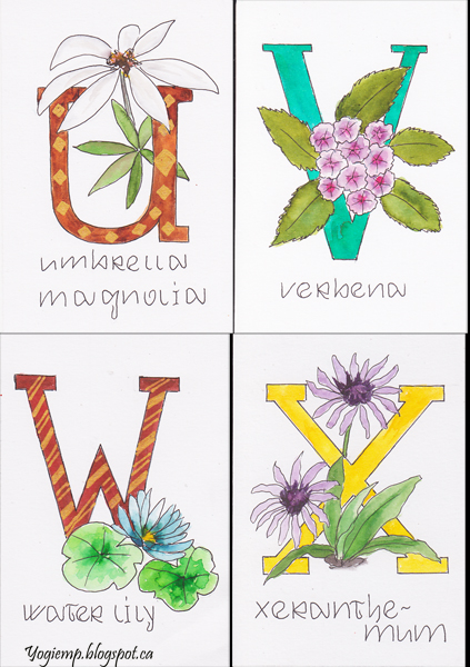 - P2(N - Z) Date Created: November 3, 2024 Click HERE to go back to A - M page Click HERE to go back to Booklet page On Canson Mixed Media paper drew out the letters and florals with a Juice Up pen that start with that letter. Coloring with various w/c media (Peerless w/c, ), accenting with gel pens and other markers. |